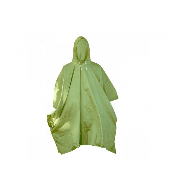 Lichtgewicht poncho met capuchon en trekkoord rond de hals. Zijkanten met rits waardoor de poncho gemakkelijk over het hoofd getrokken kan worden. Onder de poncho kan ook een kleine rugzak verborgen worden.