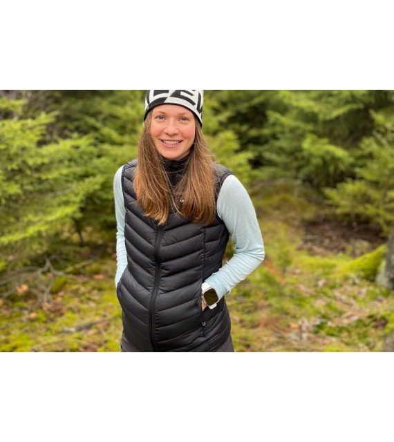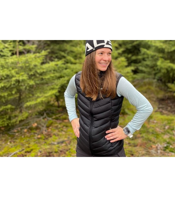 Ultralichte donzen bodywarmer met rits voor dames, geschikt voor allerlei outdooractiviteiten op koudere dagen.