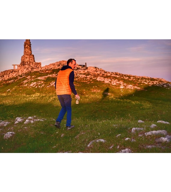 Neem de ultralichte, waterdichte Dresles M outdoor bodywarmer mee de natuur in. Je pakt hem gemakkelijk in de kleine zak in, zodat je hem bij de hand hebt wanneer je hem nodig hebt. Voor de binnenvulling hebben we hoogwaardige eendendons gebruikt, die uitstekende thermische isolatie biedt. Dankzij de waterafstotende DWR-behandeling is hij ook geschikt voor zware omstandigheden in de natuur.