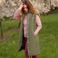 De NAPI L gewatteerde lange dames bodywarmer met capuchon mag niet in je garderobe ontbreken. Deze comfortabele gewatteerde bodywarmer met voering en membraan is ideaal voor wandelingen door de stad en allerlei outdooractiviteiten.