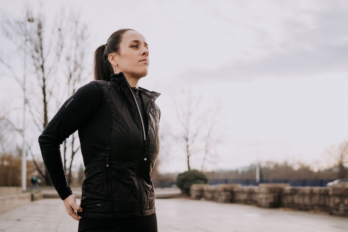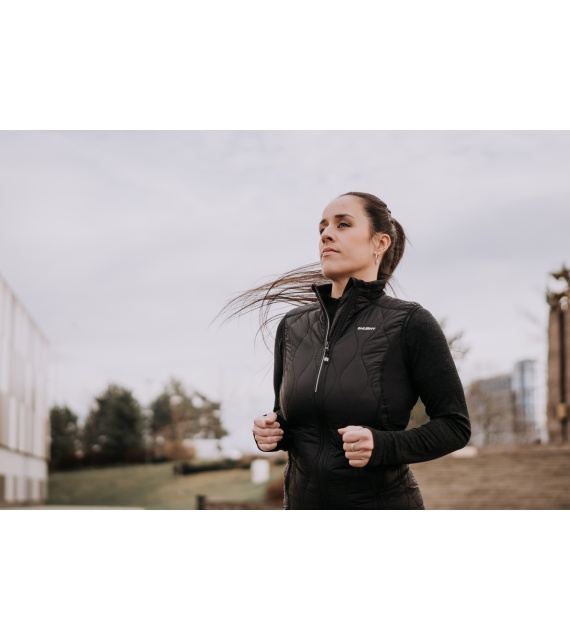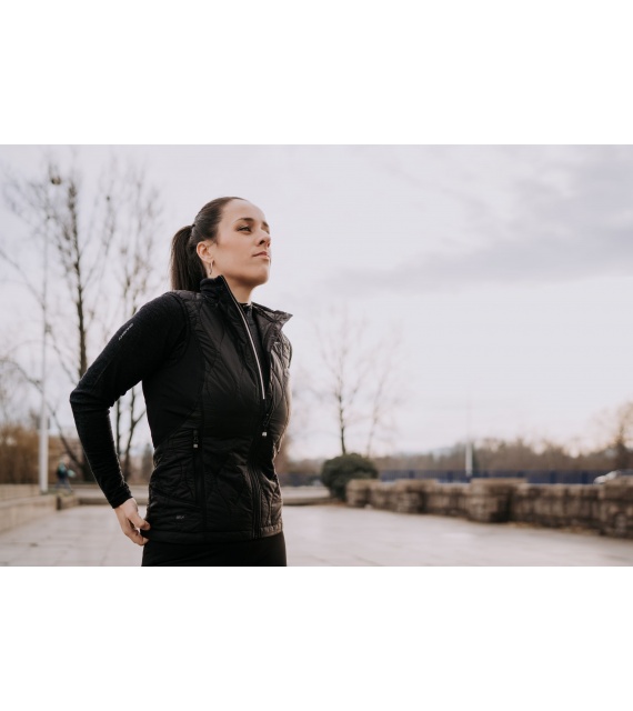 Lichtgewicht damesvest met rits, geschikt voor diverse sport- en outdooractiviteiten op koudere dagen.