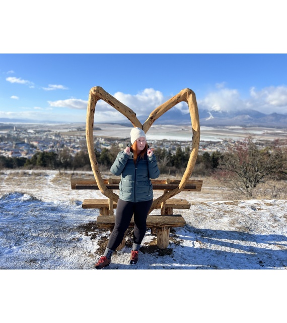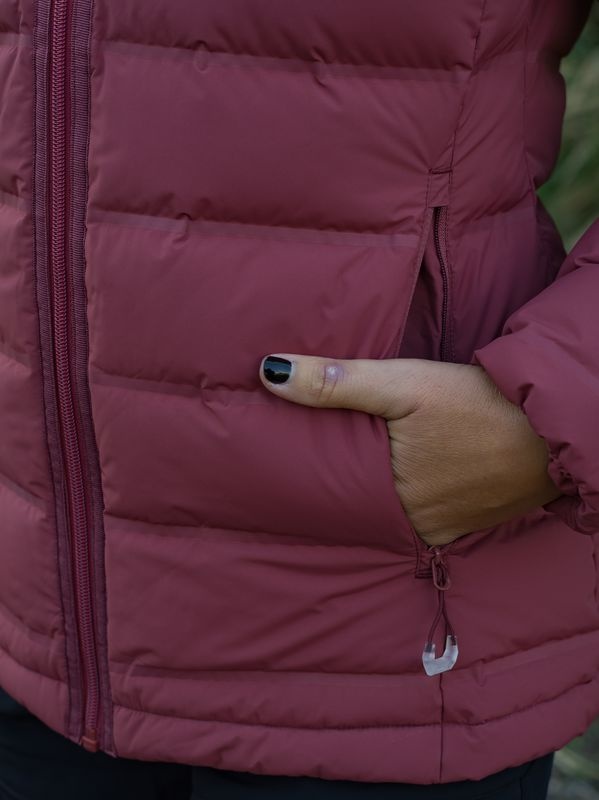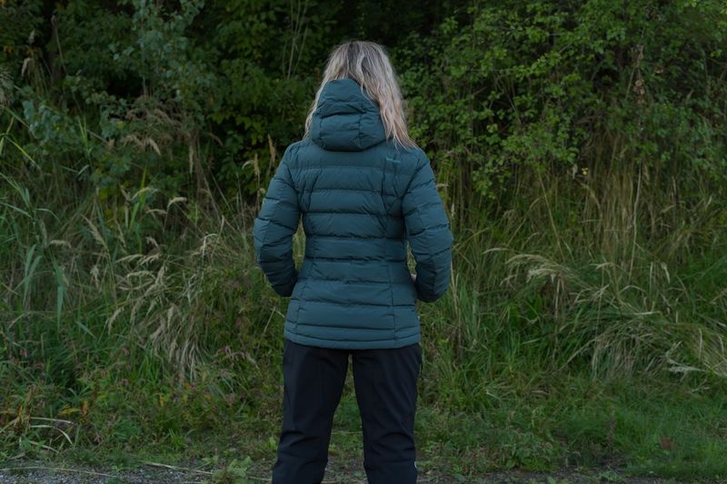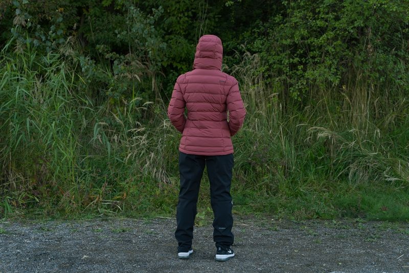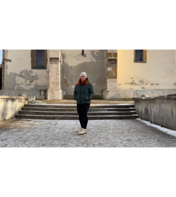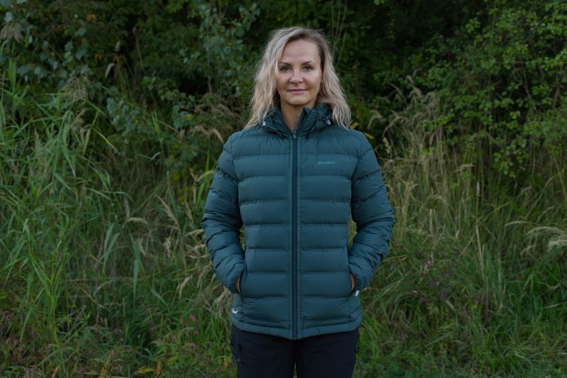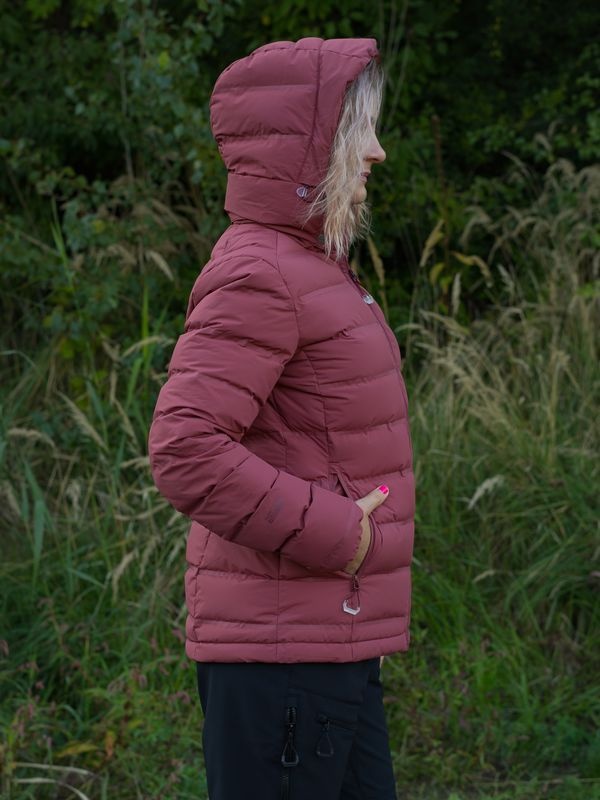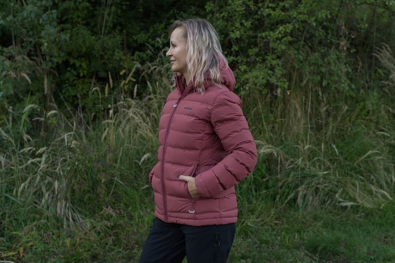 Lichtgewicht dames donsjack met capuchon voor koude dagen, zowel in de stad als in de natuur.