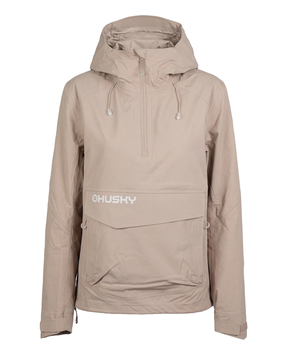 Zeer functioneel damesjack met kangoeroezak, geschikt voor het hele jaar door voor outdooractiviteiten, ook onder zware omstandigheden.