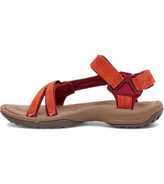 Comfortabele, gevoerde dames sandalen Terra Fi Lite Suede van het merk TEVA zijn een lichtere versie van het populaire model in een leren uitvoering. Ze voldoen nog steeds aan de criteria van de hoogste kwaliteit, veelzijdigheid en esthetiek. Je kunt er comfortabel mee door de stad lopen, maar ook op een wandeling, waar ze gemakkelijk overweg kunnen met instabiel en nat terrein. Met de verstelbare bandjes over de tenen, wreef en hiel pas je ze precies aan zoals je wilt voor een perfect comfortabele stap.