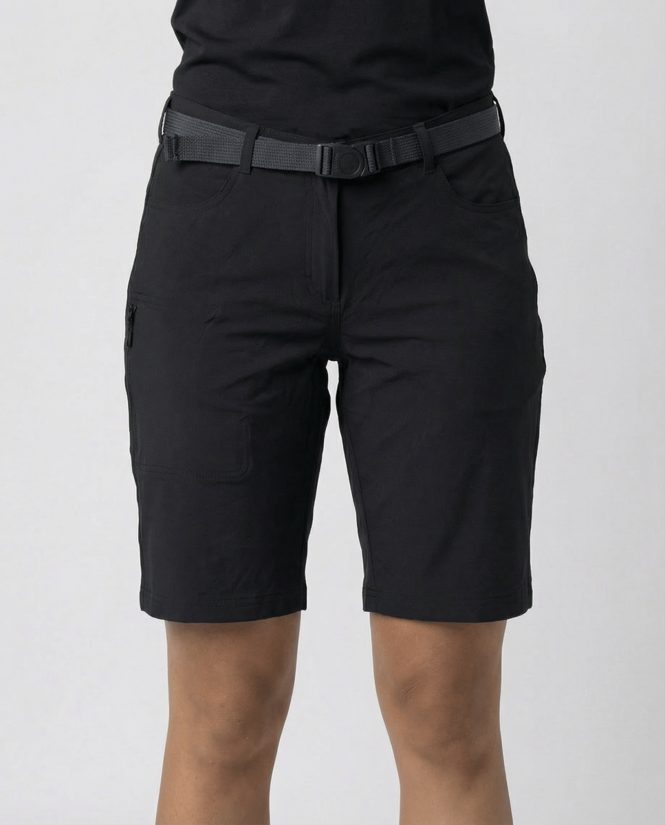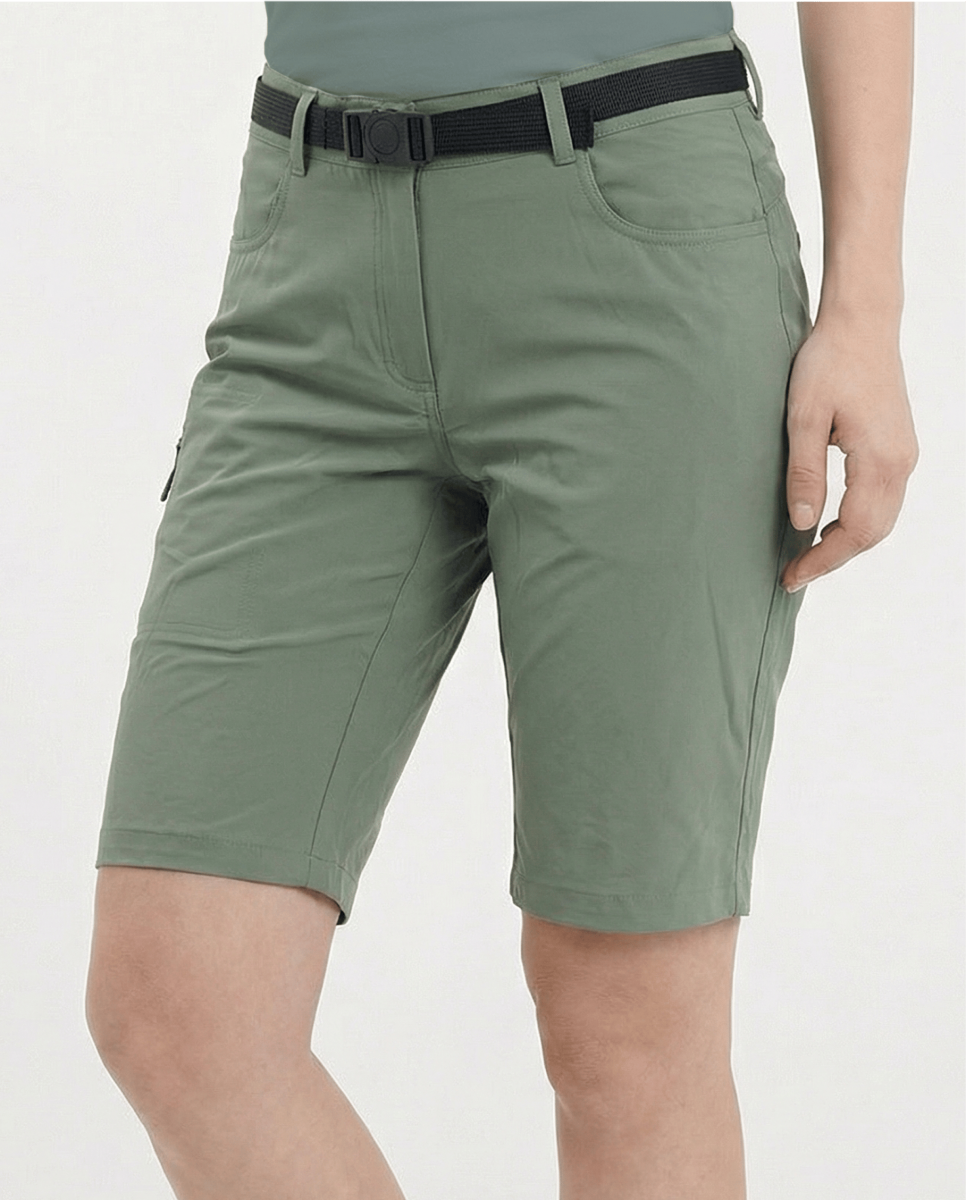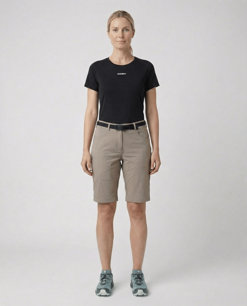 Lichte functionele dames short van elastisch materiaal, geschikt voor de stad, reizen en de natuur.