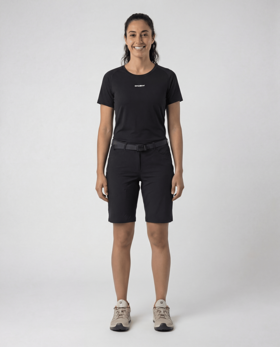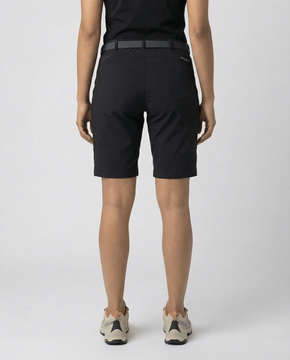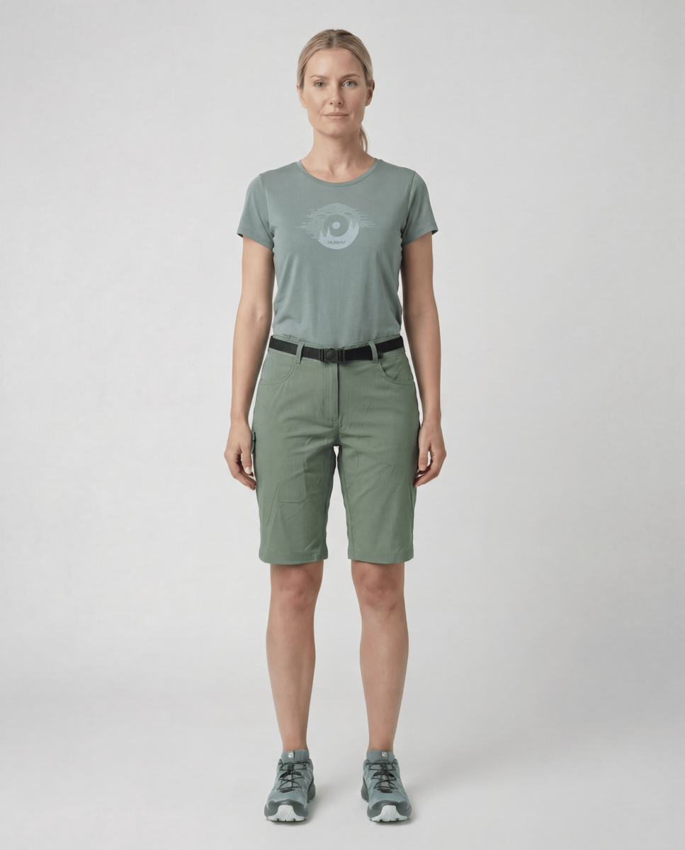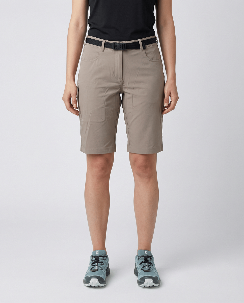 Lichte functionele dames short van elastisch materiaal, geschikt voor de stad, reizen en de natuur.