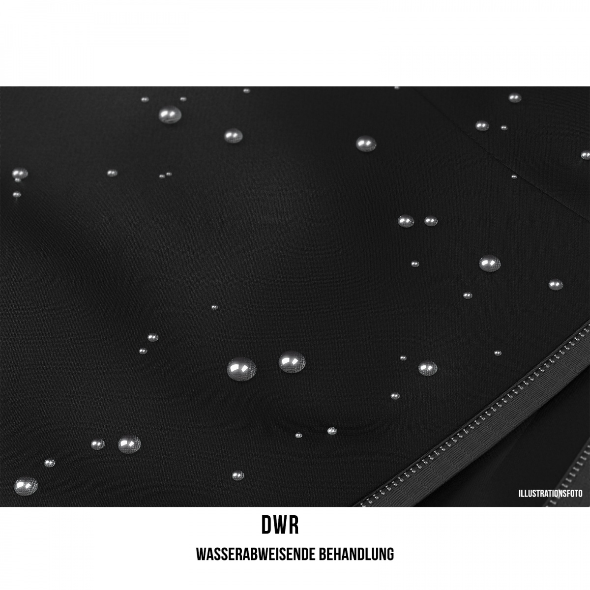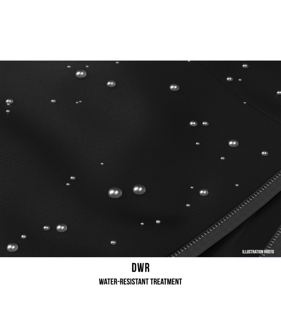 • DWR waterafstotende buitenbehandeling van de buitenste laag van het kledingmateriaal voorkomt dat vocht binnendringt, zodat water onmiddellijk aan de oppervlakte afvloeit in de vorm van druppels.