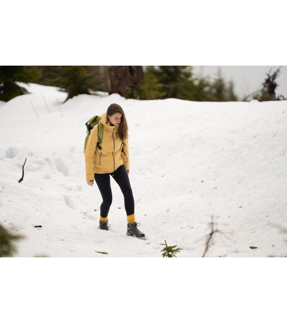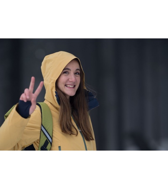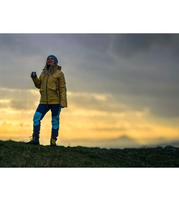 Als je ook in de winter niet thuis wilt zitten, dan is de dames hardshell jas Gambola L precies wat je zoekt. Je kunt hem ook dragen onder zware natuurlijke omstandigheden, waar het belangrijk is om thermisch comfort en tegelijkertijd ademend vermogen voor actievere beweging te behouden. We hebben hem gemaakt van hoogwaardig materiaal met een waterdicht membraan van 20.000, zodat je je kunt concentreren op maximale prestaties en je altijd droog en warm blijft.