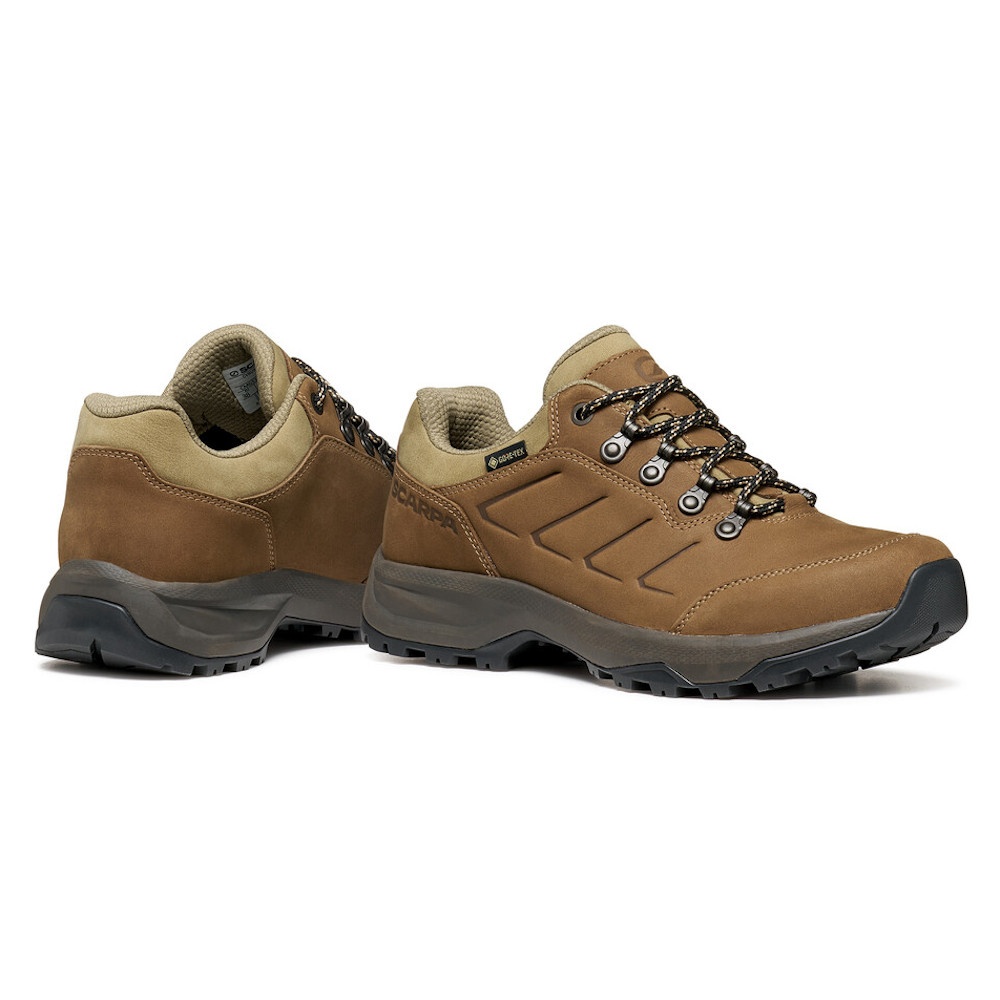 SCARPA Cyrus 2 GTX Ld zijn lichte en zeer duurzame schoenen, ideaal voor stedelijke activiteiten en reizen. Damespasvorm die de anatomie van de vrouwelijke voet respecteert voor een ideale pasvorm. Dankzij het zachte bovenwerk van nubuckleer en de ergonomische vorm met voldoende ruimte voor de tenen, bieden ze uitzonderlijk comfort bij elke stap. Voor de gewatteerde tong en de kraag onder de enkel is nieuw leer gebruikt, wat zorgt voor een langere levensduur en maximaal comfort. De tussenzool van EVA-materiaal absorbeert schokken uitstekend en is slijtvast. De speciaal ontworpen PRESA-zool van SCARPA combineert bescherming met lichtheid en zorgt voor stabiliteit en veiligheid, zelfs tijdens langere wandelingen. De schoenen zijn uitgerust met het moderne GORE-TEX ePE Most Breathable membraan, dat zorgt voor uitzonderlijke ademend vermogen, waterdichtheid en technische prestaties. Deze nieuwe generatie membranen is ook milieuvriendelijker – bevat geen PFC en is gecertificeerd volgens de Bluesign®-standaard.