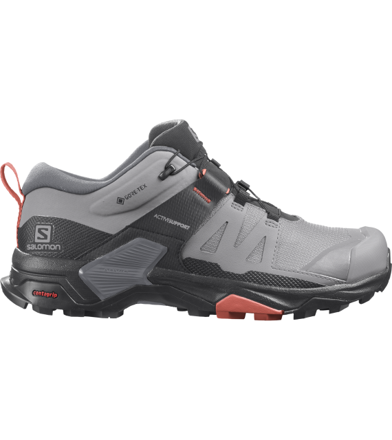 Dames outdoor schoenen X Ultra 4 GTX W van het merk Salomon laten niets aan het toeval over. Ze passen zich volledig aan de morfologie van je voet aan, waardoor ze je gewrichten beschermen en je optimale stabiliteit bieden zonder je bewegingsvrijheid te beperken. Dit alles wordt ondersteund door waterdichte GORE-TEX bescherming en een zool met hoge grip, zelfs op nat en glad terrein, wat je vooral bij afdalingen zult waarderen. Aarzel niet en neem ze mee op je tocht!