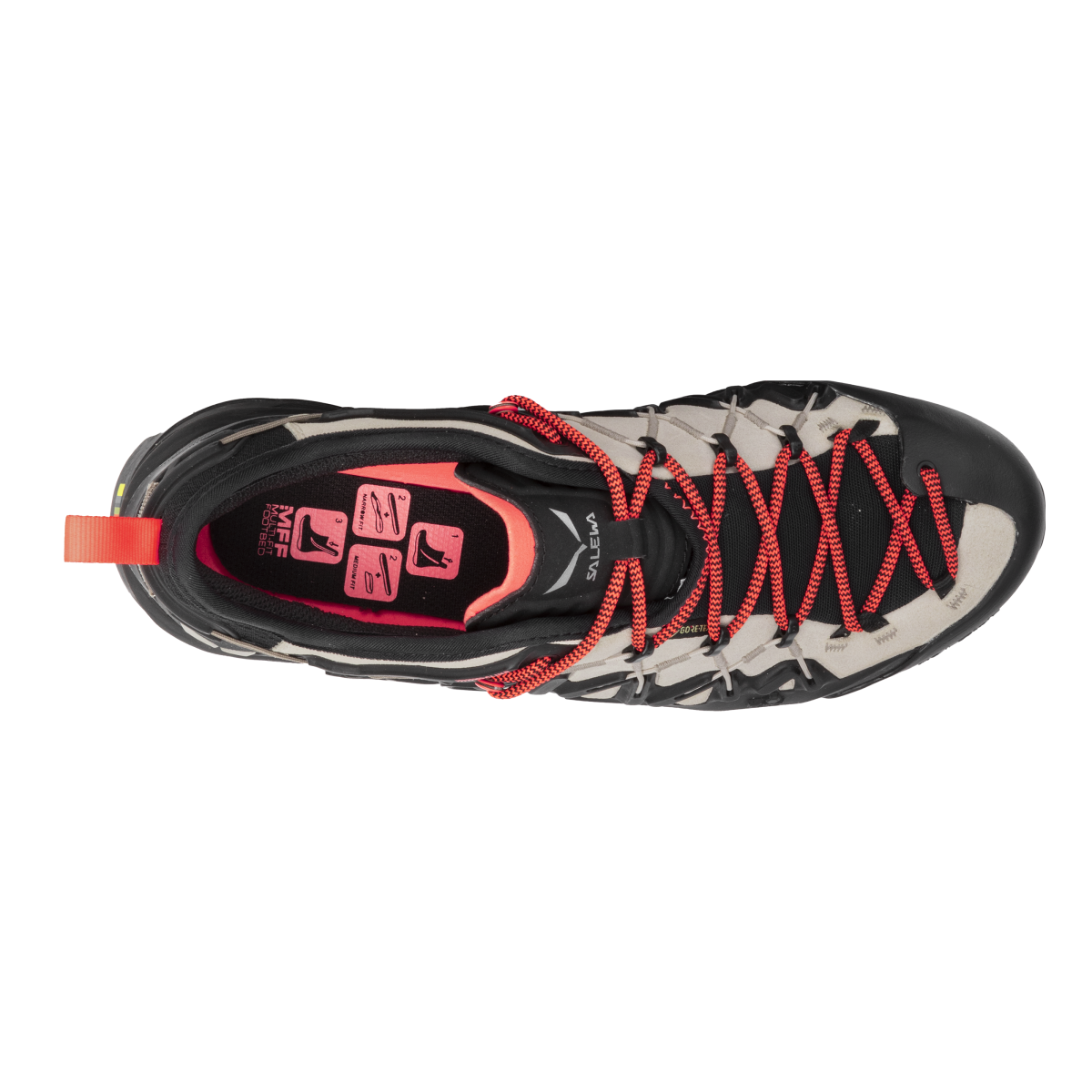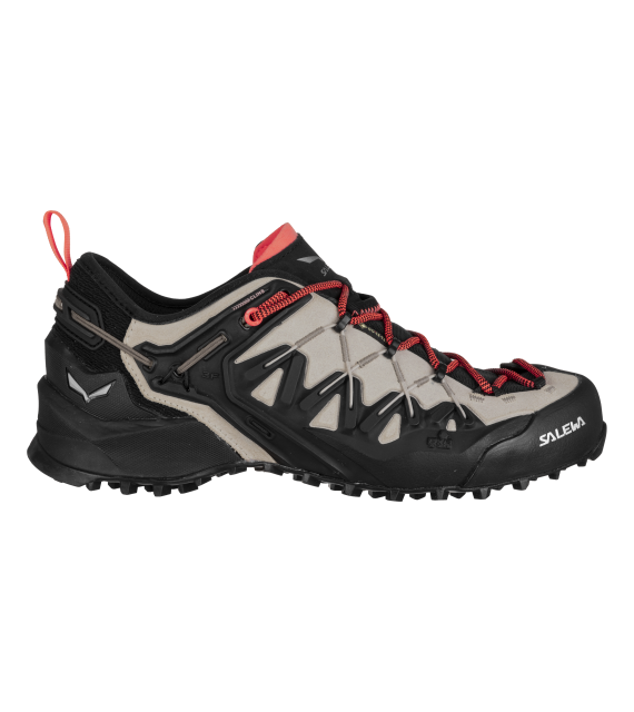 De Wildfire Edge GTX schoenen zijn gemaakt van waterdicht GORE-TEX® materiaal met Switchfit aanpassing, die de schoenen snel en eenvoudig van toer- naar klimmodus schakelt. Dankzij de vetersluiting tot aan de tenen kan de schoen nauwkeurig aan de voet worden aangepast. Door de stevige aantrekking van de veters via het tweede oogje wordt de voet naar voren verplaatst, net als bij klimschoenen, wat resulteert in een hoge gevoeligheid op kleine treden. Het bovenwerk van de schoen is gemaakt van robuust leer met een rasterconstructie, die zorgt voor torsiestabiliteit en het 3F systeem verbindt de wreef met de hiel voor een stevige fixatie. De Multi Fit Footbed Plus (MFF+) binnenzool biedt uitstekende demping en maakt gebruik van verwisselbare dubbellaagse inlegzolen voor een precieze aanpassing aan de voet. De buitenzool van de schoen is gemaakt van Pomoca Speed MTN materiaal van kleverig rubber voor extra grip op gladde en oneffen oppervlakken.