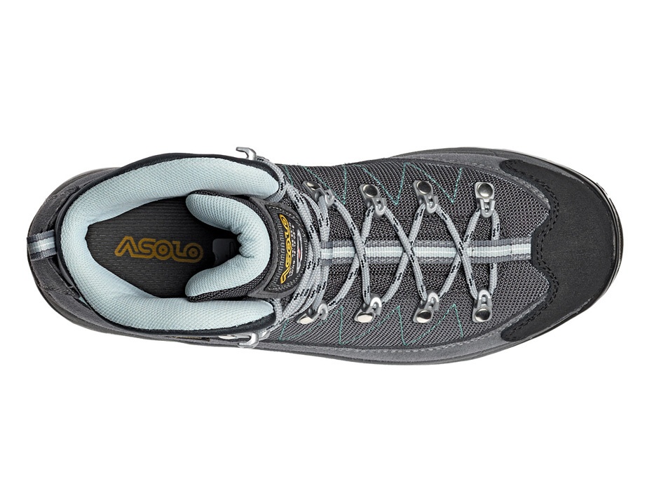 Op natte rotsen en modderige paden biedt de Vibram® Duo Radiant zool met zelfreinigend profiel u maximale ondersteuning. En bij het afdalen van los puin en steil terrein, remt de geïntegreerde Asobrake technologie u af.
