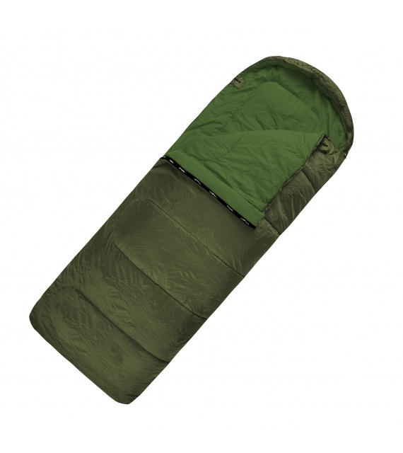 Comfortabele en ruime deken slaapzak in legerstijl, geschikt voor buitenactiviteiten en verblijf in een zomerhuisje van lente tot herfst.