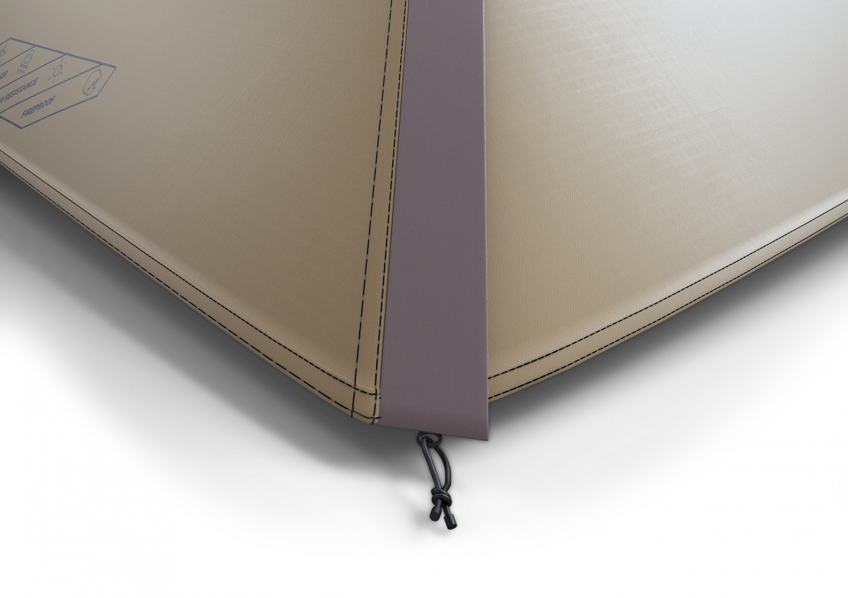 Het is een polyesterweefsel. Dat is sterk maar licht tegelijk, wat een groot voordeel is bij tenten.