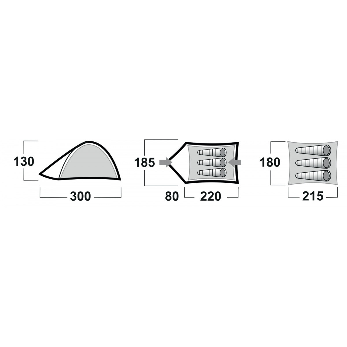 | Constructie | dubbelwandige zelfdragende tent met binnenconstructie |