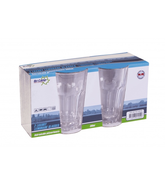 Extra stevige en luxe set limonadeglazen. Gemaakt van 100% polycarbonaat. Hierdoor is het glas vrijwel onbreekbaar, licht en krasbestendig. Deze glazen kunnen ook in de vaatwasser. Verpakt per 2 stuks.