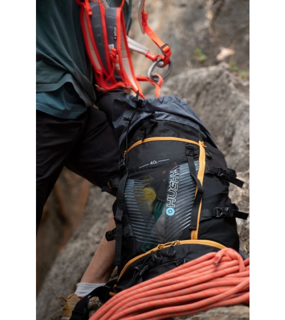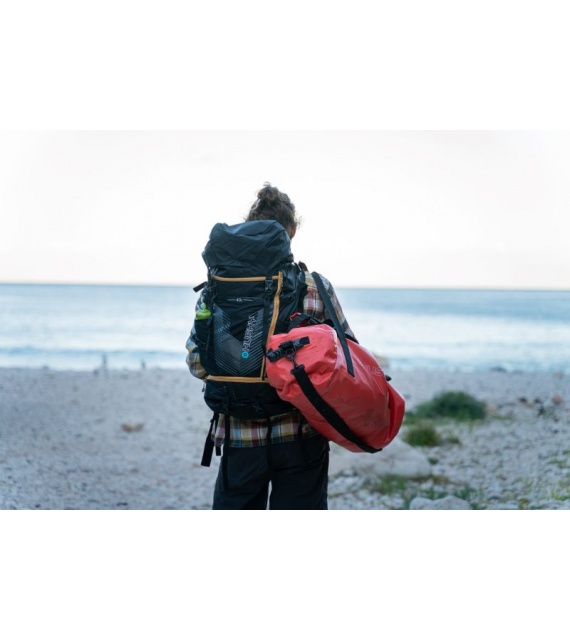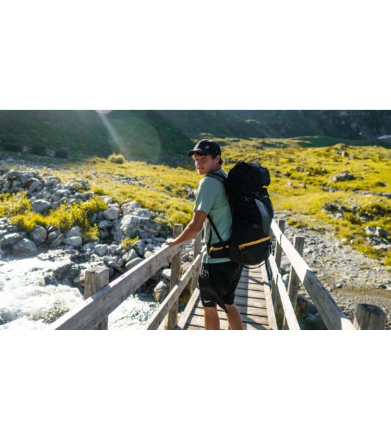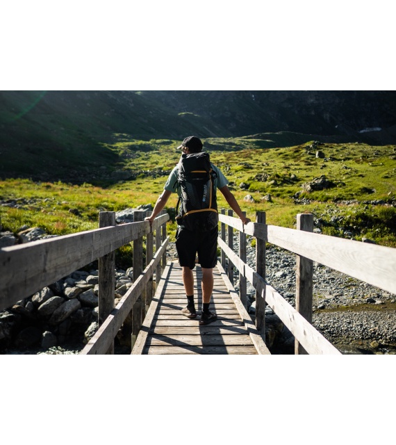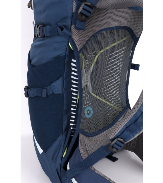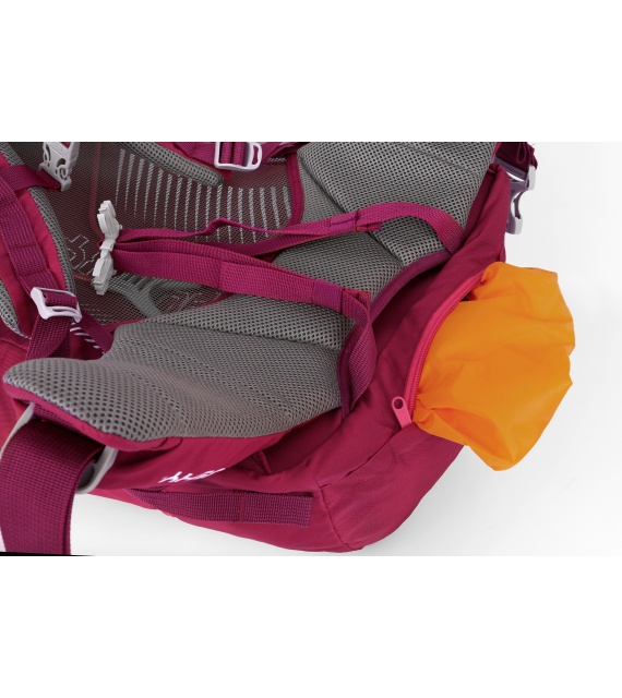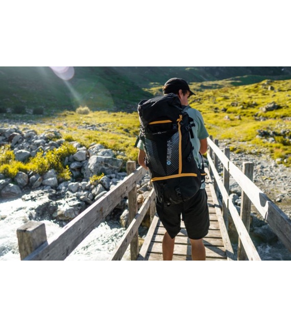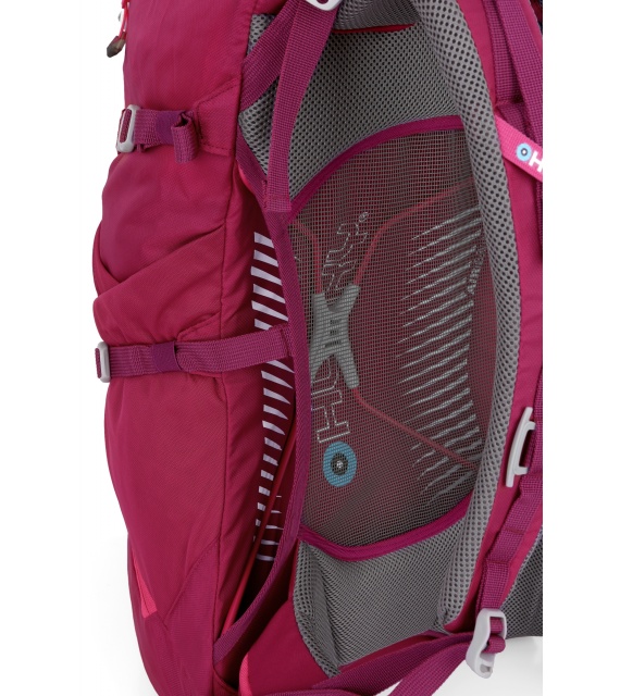 Een rugsysteem van gaas dat uniek is in zijn ontwerp. Het is bevestigd met twee Dural verstevigingen die de rugzak weghouden van het gaas dat tegen de rug aan zit. Dit creëert een ruimte tussen je rug en de rugzak waar de lucht vrij kan circuleren. Bovendien heeft dit systeem een uitstekend vormaanpassingsvermogen.
