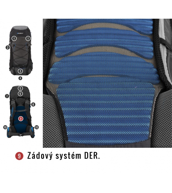 Een zeer comfortabel, in hoogte verstelbaar rugsysteem dat anatomisch gevormd is. De hoogte kan hier gemakkelijk worden aangepast aan je behoeften. Het is gemaakt van EVA-schuim gecombineerd met 3D mesh om een goede pasvorm op de rug te garanderen en comfortabele ventilatie in dit gebied mogelijk te maken door de juiste vormgeving. Dit systeem zorgt ook voor voldoende stevigheid en een juiste gewichtsverdeling.