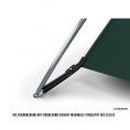 Het is een zeer licht, scheurbestendig materiaal. De synthetische polyestervezels verhogen de bescherming van het product tegen barre weersomstandigheden, verbleken en veel nat worden, omdat ze heel snel drogen. Deze eigenschappen worden nog versterkt door de RIPSTOP-afwerking. Dankzij de technologie waarmee deze stoffen geweven zijn, wordt mechanische schade voorkomen, en als die zich toch voordoet, wordt de verdere spontane verspreiding ervan gestopt.