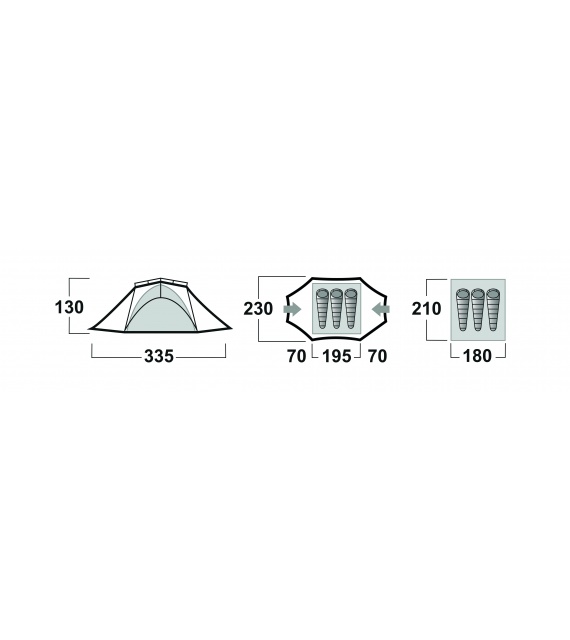 | Constructie | dubbelwandige, zelfdragende tent met buitenconstructie |