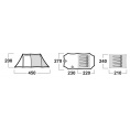 | Gewicht | : totaal 12,8 kg Constructie: dubbelwandige tunneltent met buitenconstructie |