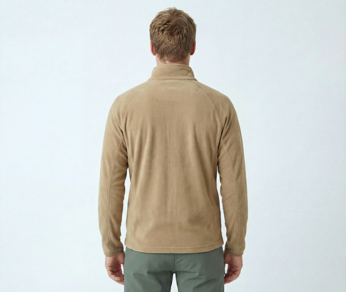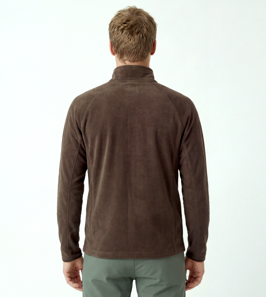 Sterkere herentrui met rits tot aan de nek, geschikt voor diverse outdooractiviteiten.