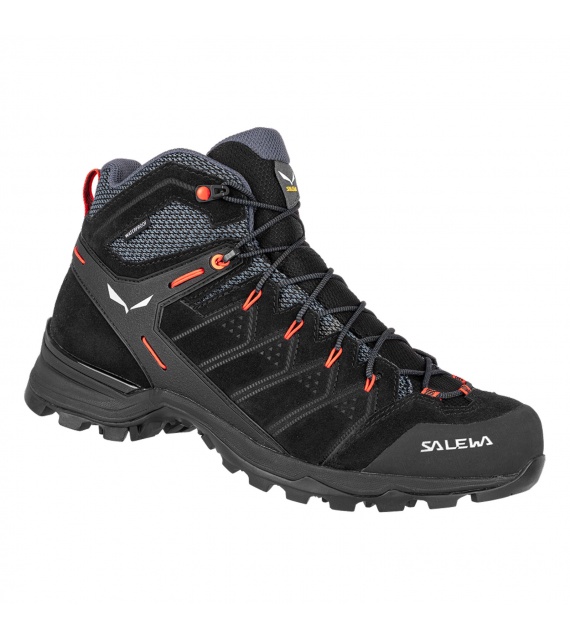 De Salewa Alp Mate Mid WP voor heren zijn robuuste en duurzame wandelschoenen. Het bovenwerk is gemaakt van hoogwaardig suède met een waterdicht membraan. Voor extra ademend vermogen is de tong en enkelgebied gemaakt van stevig mesh. Een rubberen neuskap en hielstabilisator bieden bescherming en stabiliteit aan uw voeten. Ze zijn uitgerust met het gepatenteerde Salewa 3F® systeem, dat de wreef verbindt met de achterkant van de schoen, wat zorgt voor meer enkelsteun en hielondersteuning. Het vetersysteem tot aan de tenen verbetert de pasvorm van de schoen aan de voet, vooral in het voorste gedeelte, en maakt zeer fijne en precieze teenwerk mogelijk in technisch terrein. De zachte EVA tussenzool biedt uitstekende demping bij het landen op harde of oneffen terreinen. De specifieke Pomoca® buitenzool zorgt vervolgens voor goede grip en tractie op en naast het wandelpad.