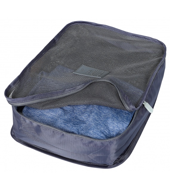 Deze set van vier organizers met rits in verschillende maten helpt je om je bagage georganiseerd en netjes te houden. Ideaal voor het scheiden van kleding, cosmetica en elektronica, of je nu een weekendje weg, op zakenreis of op een langere vakantie gaat. De gaaszijde aan de voorkant zorgt ervoor dat je kleding blijft ademen en niet vochtig wordt. Bovendien kun je door het gaas precies zien wat erin zit.
