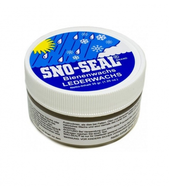 Sno-Seal® impregnatie op basis van bijenwas vormt na het drogen een sterke wasfilm op het leeroppervlak, die ervoor zorgt dat het leer waterafstotend en niet nat wordt. Sno-Seal® beschermt leer tegen overmatig uitdrogen en houdt het soepel en sterk, zelfs in het droogste woestijnklimaat. Looierijen verwijderen bij het looien van leer voor outdoor gebruik al het dierlijke vet uit het leer en vervangen het door synthetische hydrofobering. Wij garanderen dat Sno-Seal® geen afbreuk doet aan de hydrofobering. Ook schoenen met een membraanvoering (Gore-TEX®, Sympatex® enz.) krijgen betere eigenschappen als ze behandeld worden met Sno-Seal®. Terwijl het membraan in de voering water van buitenaf tegenhoudt, ook als de schoen onbehandeld is, zal onbehandeld leer dat doordrenkt is met water de schoen volledig beletten te ademen. Je voeten gaan dan zweten en je begint het koud te krijgen. Met de Sno-Seal® behandeling blijven je voeten altijd droog en warm.