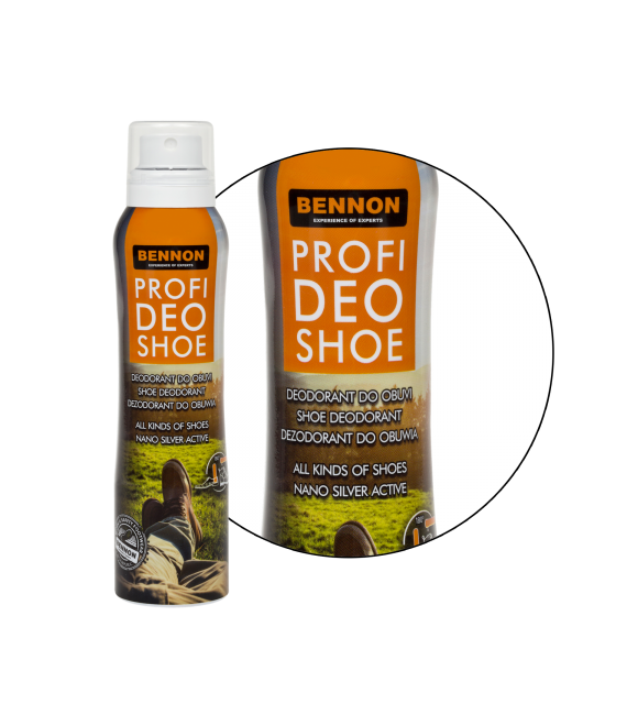 Deodorant met nanodeeltjes van zilver en siliciumdioxide. Houdt schoenen langer fris en beschermt ze veel langer tegen onaangename geurtjes dan gewone deodorants. Zilver voorkomt de vermenigvuldiging van micro-organismen, siliciumdioxide absorbeert onaangename geurtjes.