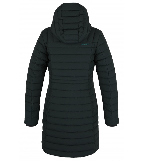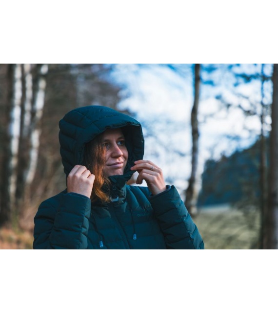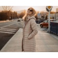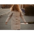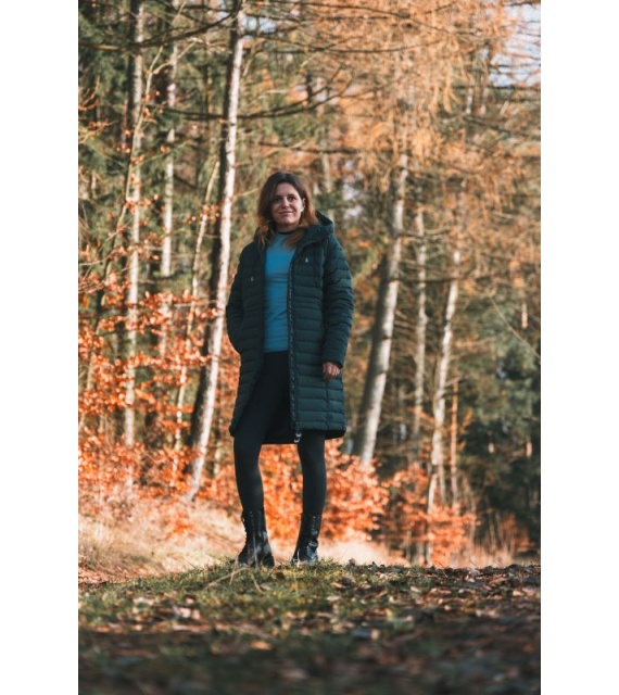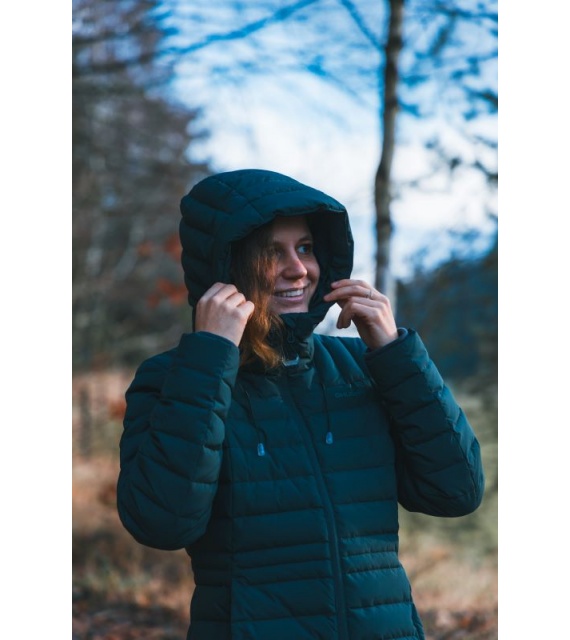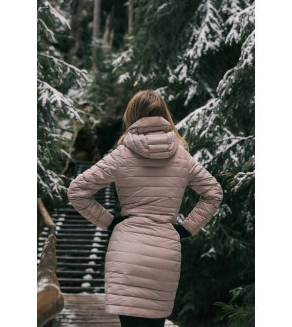 lange damesjas met eendendons vulling en waterdichte finish voor erg koude winterdagen.