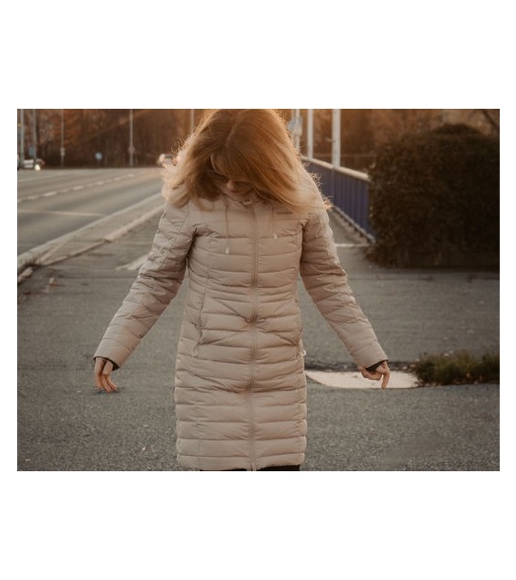 Lange gewatteerde donsjas voor in de winter, geschikt voor alle vrijetijdsactiviteiten.