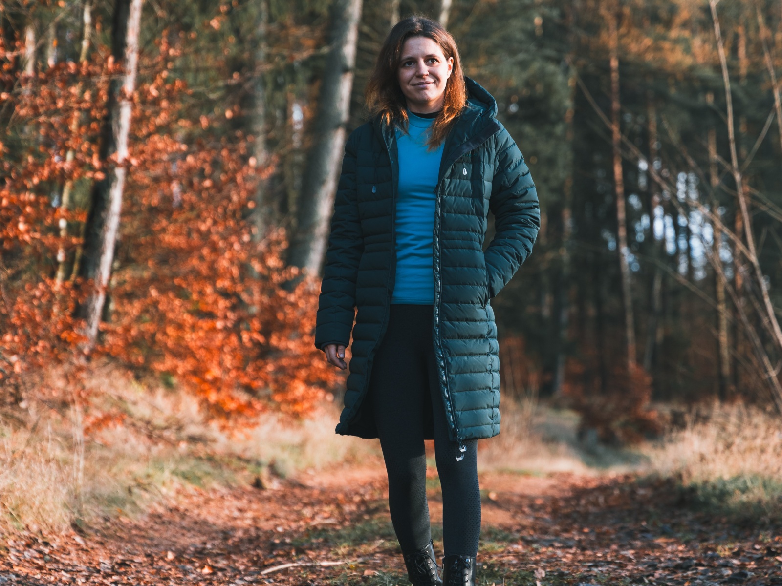 Lange gewatteerde donsjas voor in de winter, geschikt voor alle vrijetijdsactiviteiten.