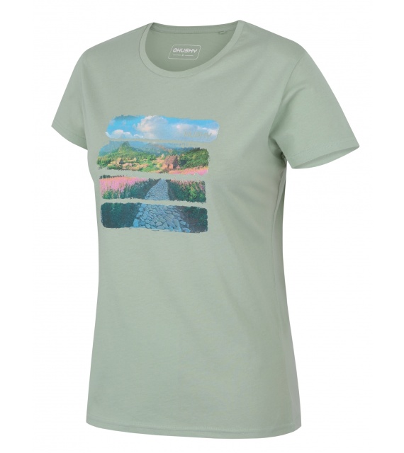 Tee Flo L katoenen dames T-shirt met stijlvolle opdruk en korte mouwen met een eenvoudig ontwerp en klassieke pasvorm is een elegant en tijdloos kledingstuk. Het biedt eersteklas comfort en functionaliteit voor elke moderne vrouw. Draag dit T-shirt tijdens het sporten en alle outdoor activiteiten waarbij comfort en prettig materiaal belangrijk voor je zijn.