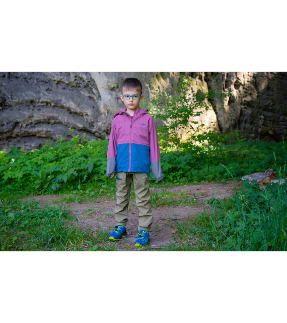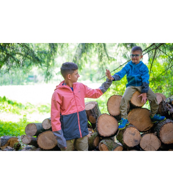 Functionele hardshell jas voor kinderen met een membraan, geschikt voor zware omstandigheden en klassiek wandelen.