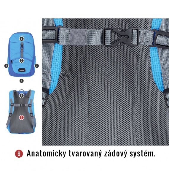 Het anatomisch gevormde rugsysteem combineert de stijve versteviging van een volledig rugpaneel met een ademende 3D mesh vulling die anatomisch is en perfect aansluit op je rug. Dit zorgt voor een goede ventilatie en stabiliteit van de rugzak.