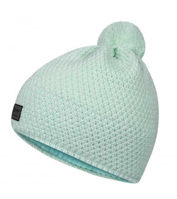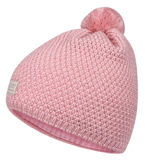 Kinder gebreide muts met fleece voering en pompon.