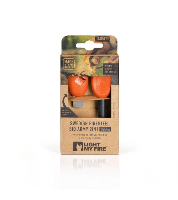 FireSteel Army is de grotere broer van FireSteel Scouts en biedt maar liefst 12.000 hits bij 3000 graden. Dit is het soort warmte dat het mogelijk maakt om op elke hoogte en in elk weer een vuur aan te steken. De magnesiumlegering is sterk, bestendig en geschikt voor het beoogde gebruik. Geconcentreerde vonken ontsteken elke brandstof en als je vuur nodig hebt, heb je betrouwbaarheid nodig. Het is een praktisch, compact, stevig en een belangrijk onderdeel van elke uitrusting. Ergonomisch ontwerp en ingebouwd fluitje: alleen het beste van het beste.
