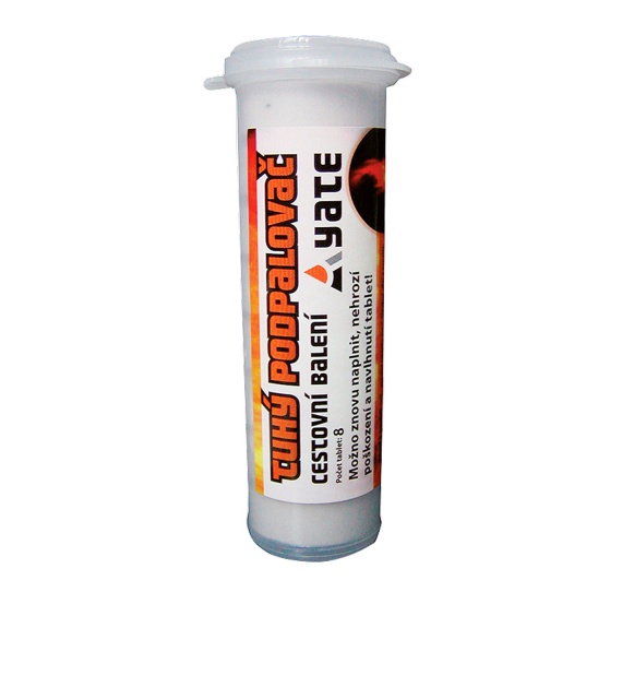 Reisverpakking, 6 aanmaakblokjes in een navulbare PE-tube. De tube beschermt de tabletten tegen vocht en beschadiging. De tabletten zijn geschikt als brandstof voor kooktoestellen die op aanmaakblokjes werken of voor het opstoken van kachels, open haarden en barbecues. Meestal is 1/2 tablet genoeg om een vuur te starten.