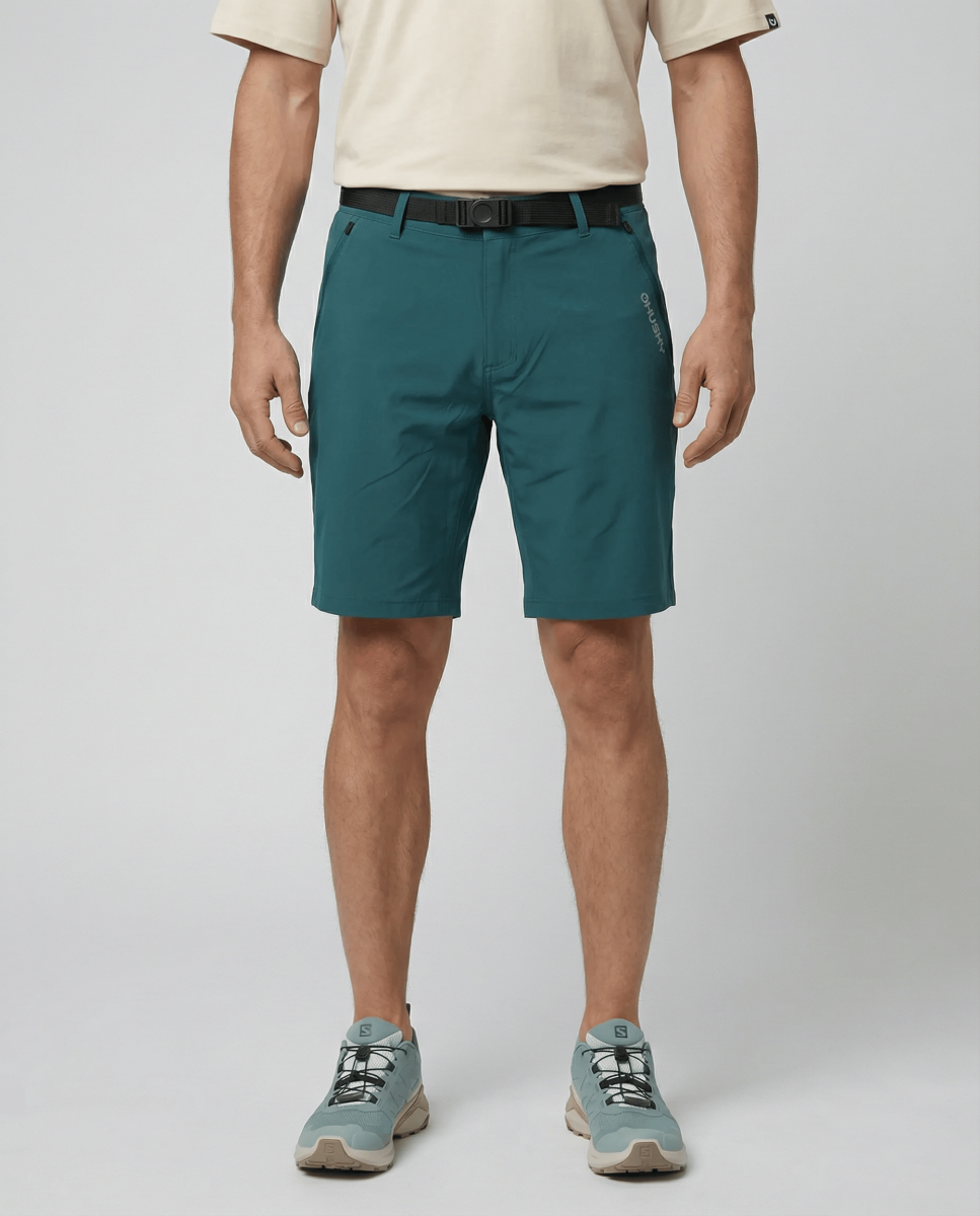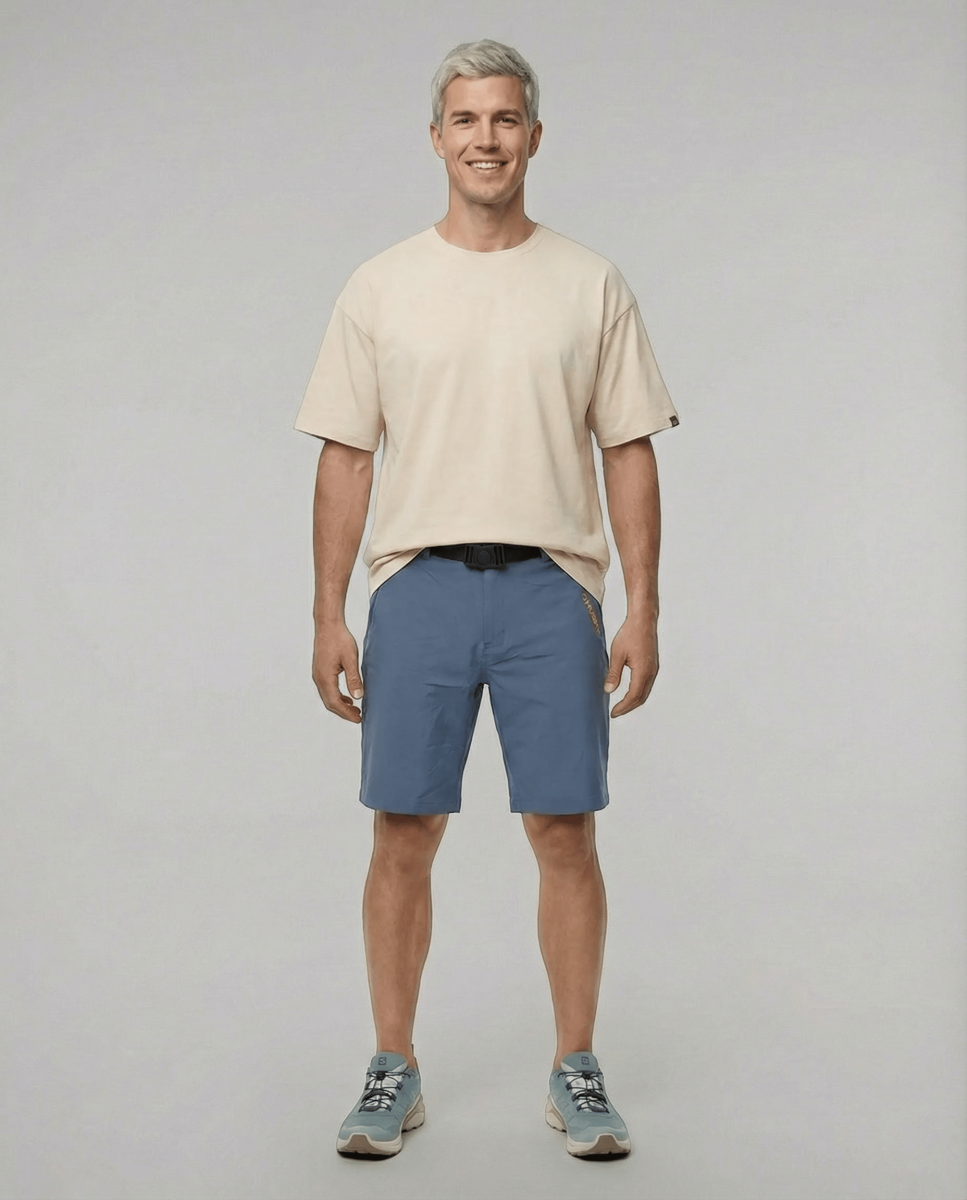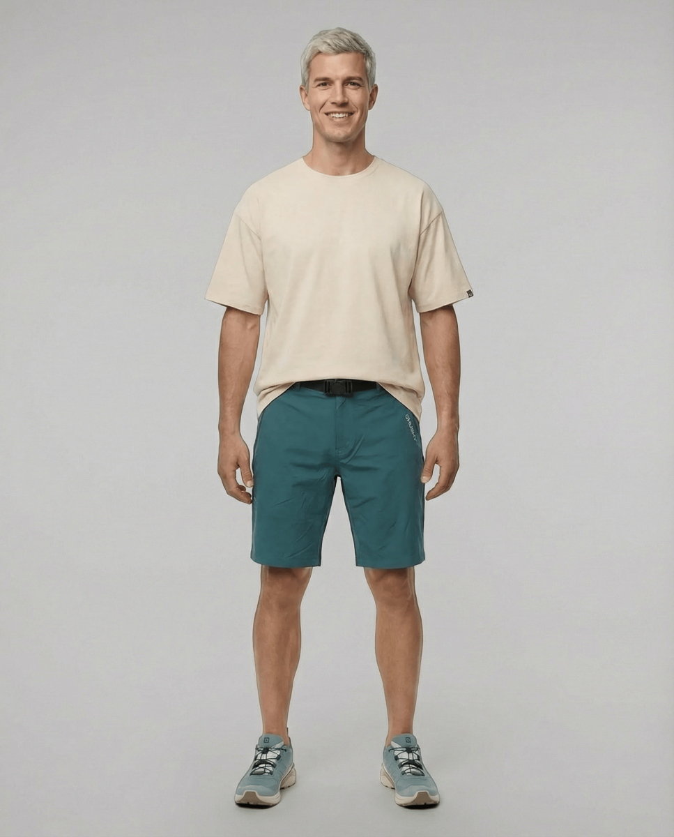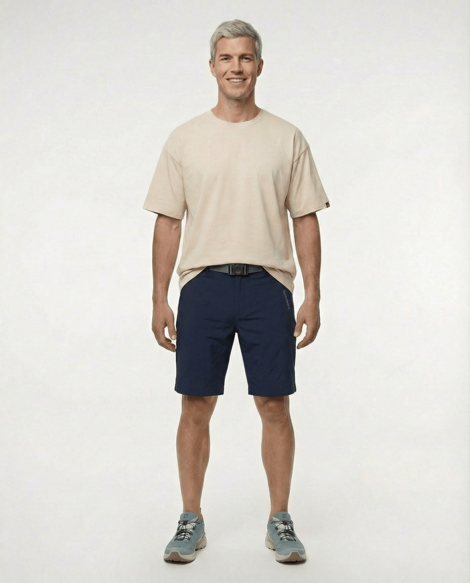 Comfortabele functionele herenshorts van elastisch materiaal, geschikt voor zowel de natuur als de stad.