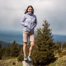 Comfortabele, functionele dames short van elastische stof, geschikt voor in de natuur en in de stad.
