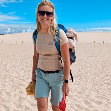 Comfortabele, functionele dames short van elastische stof, geschikt voor in de natuur en in de stad.
