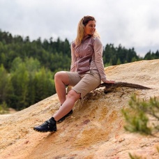 Comfortabele, functionele dames short van elastische stof, geschikt voor in de natuur en in de stad.