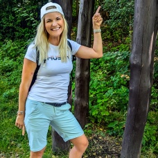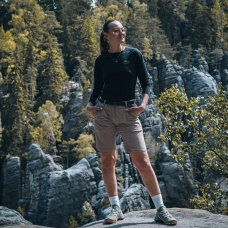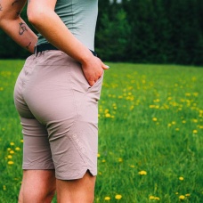 Comfortabele, functionele dames short van elastische stof, geschikt voor in de natuur en in de stad.