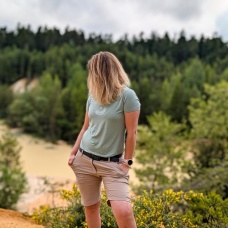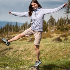 Comfortabele, functionele dames short van elastische stof, geschikt voor in de natuur en in de stad.