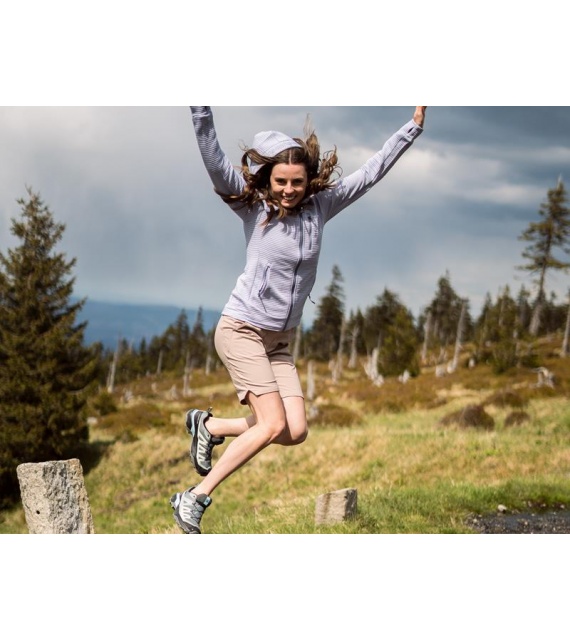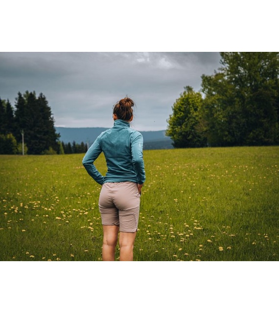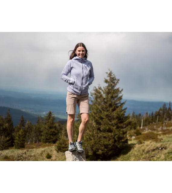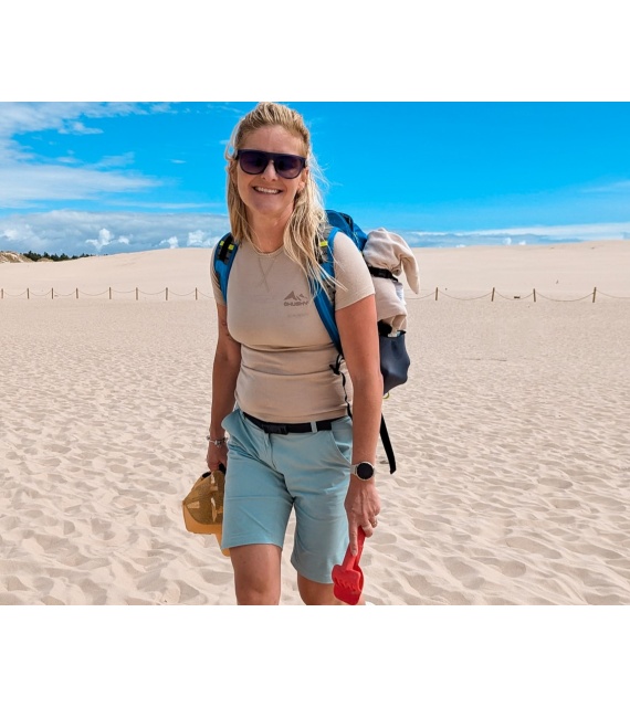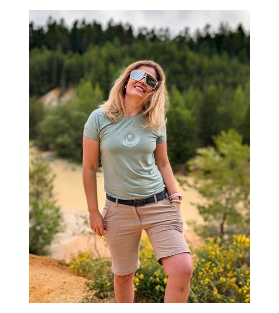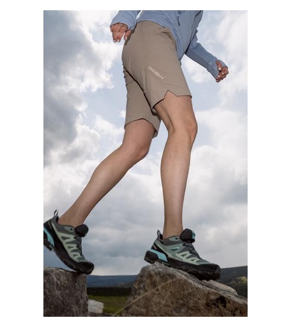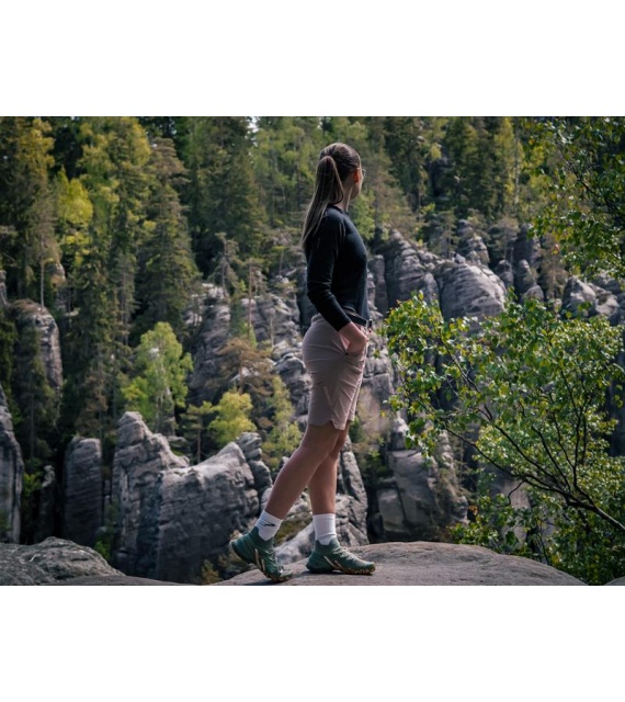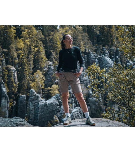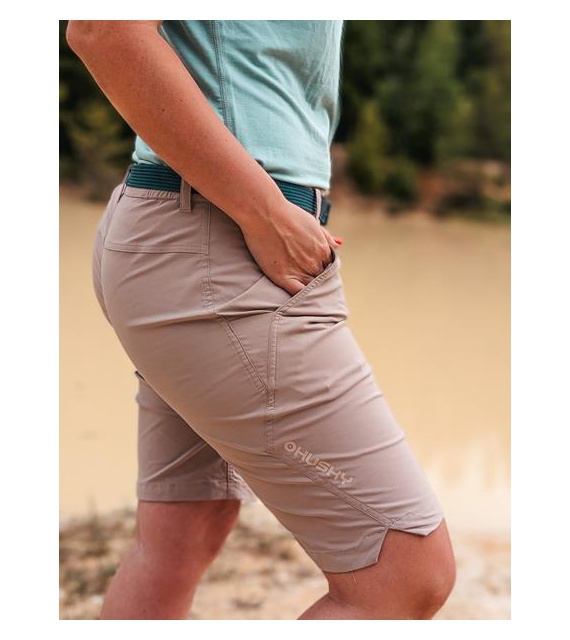 Comfortabele, functionele dames short van elastische stof, geschikt voor in de natuur en in de stad.