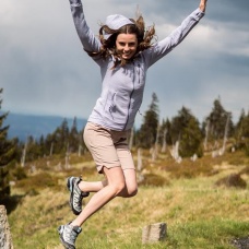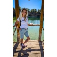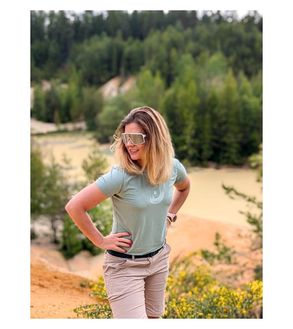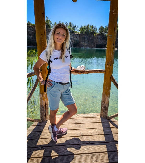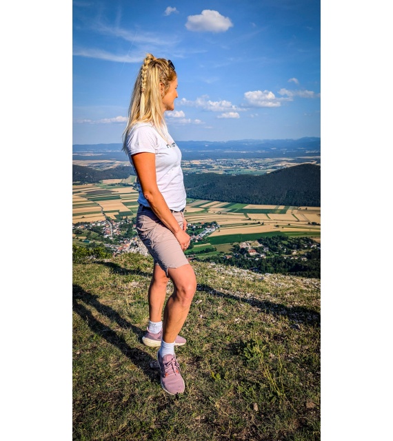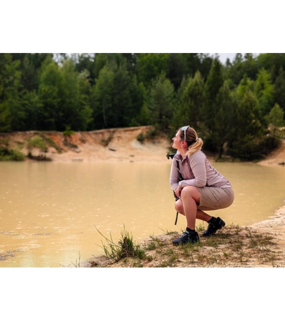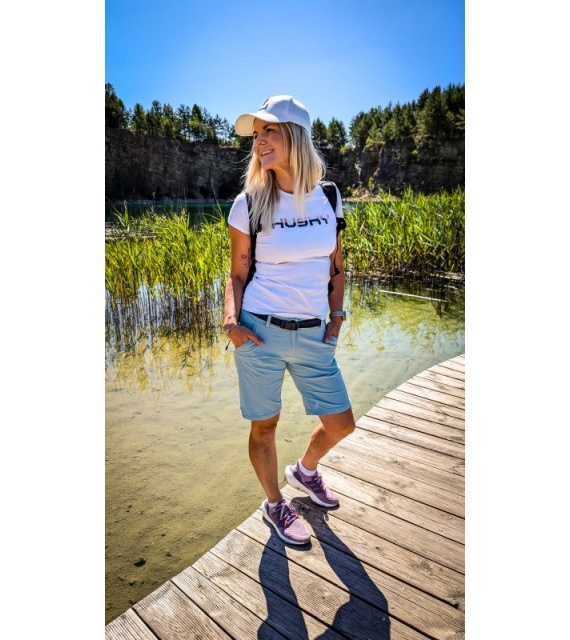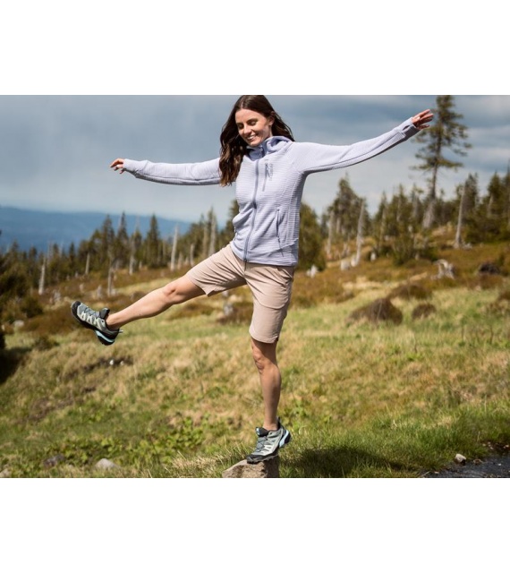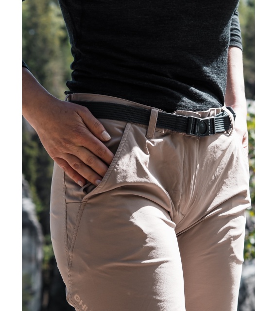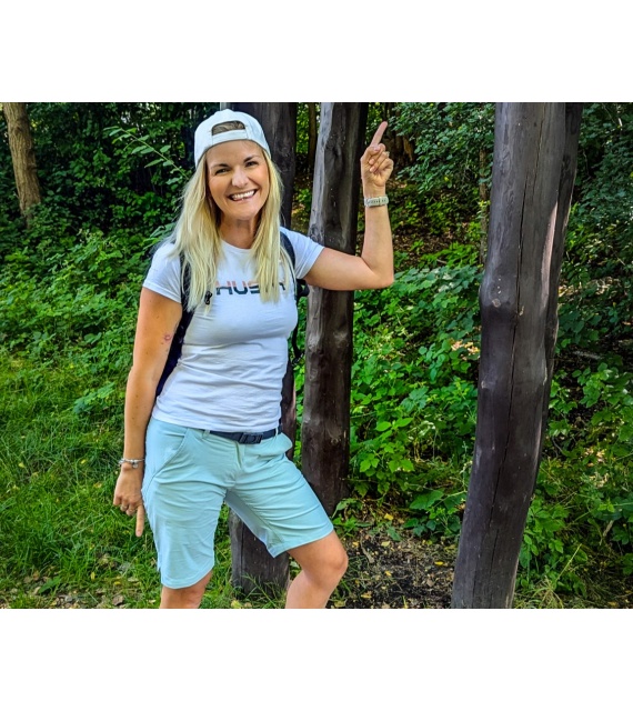 Comfortabele, functionele dames short van elastische stof, geschikt voor in de natuur en in de stad.