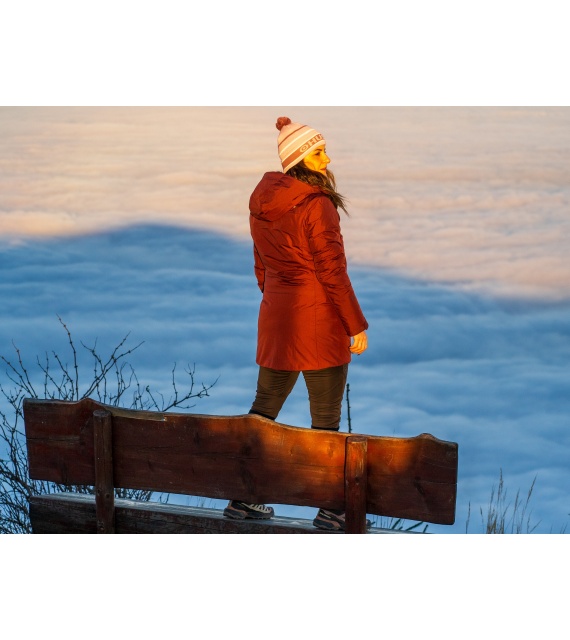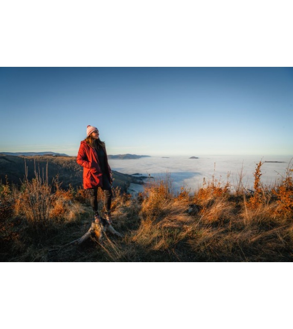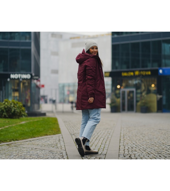 Lange comfortabele damesjas met waterdicht membraan voor allerlei buitenactiviteiten in de stad en in de natuur.