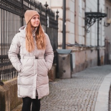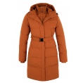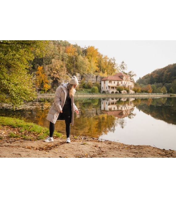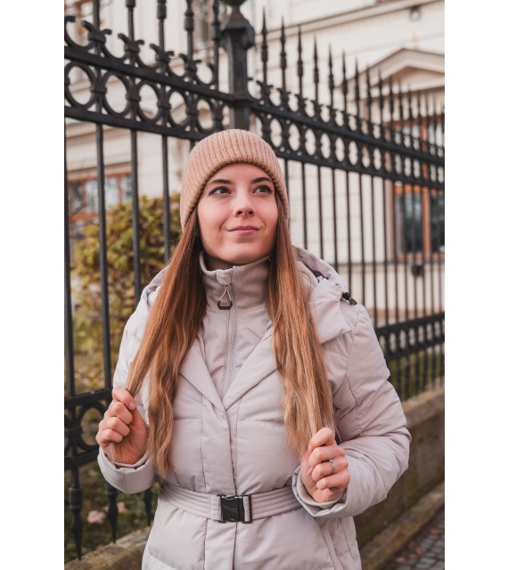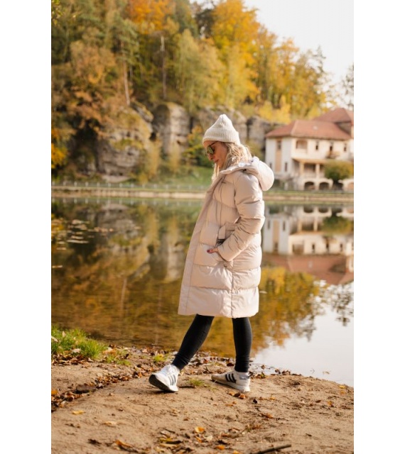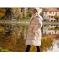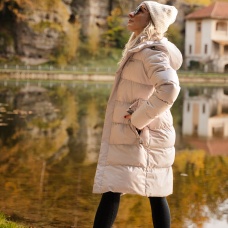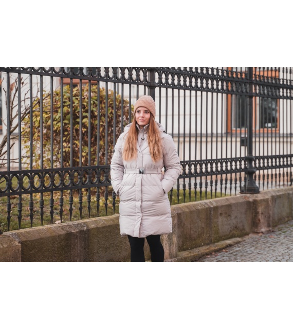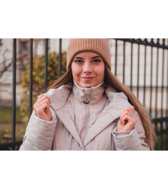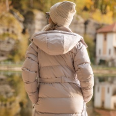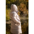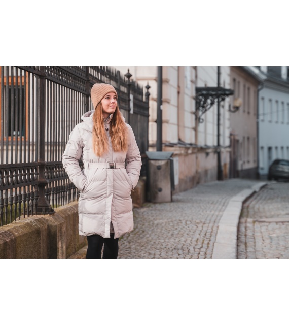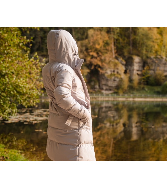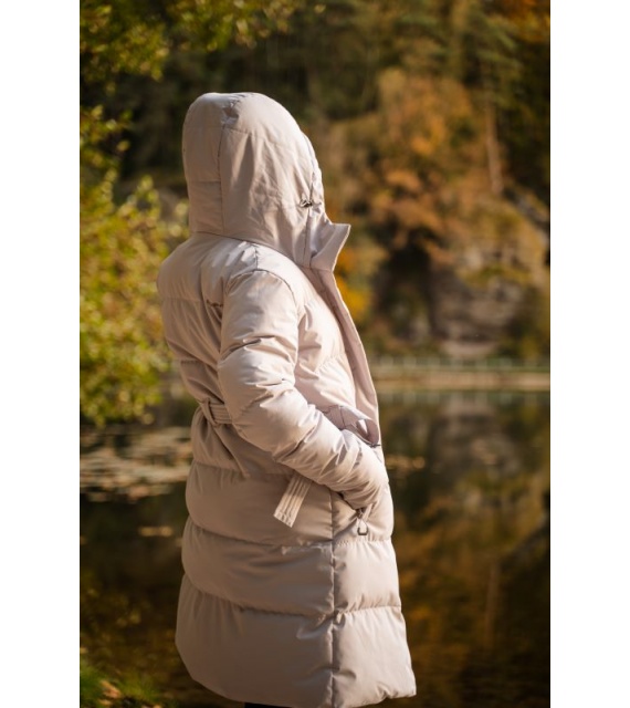 Comfortabele lange damesjas met capuchon en waterdicht membraan voor allerlei buitenactiviteiten in de stad en in de natuur.