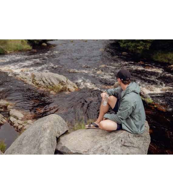 • De waterafstotende DWR-behandeling van de buitenste laag van de stof voorkomt dat er vocht doorsijpelt en zorgt ervoor dat water onmiddellijk van het oppervlak afloopt in de vorm van parels.